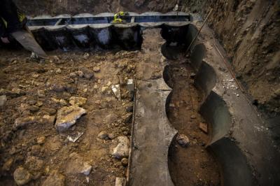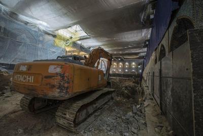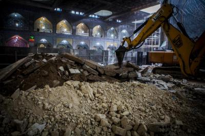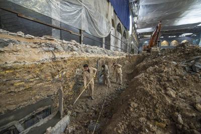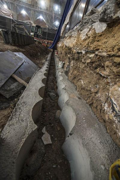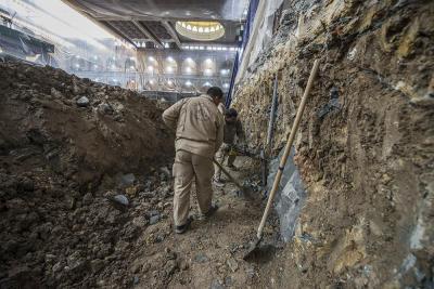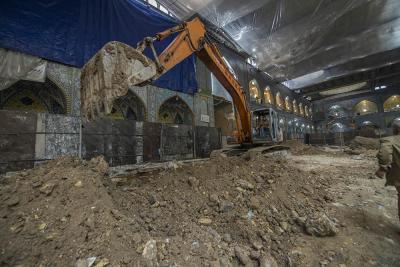 مضيفاً: "سيتمّ بعد ذلك تثبيت أعمدة كونكريتية بطريقة متداخلة مع بعضها بحدود (10سم) وبعمق (12م) تحت الأرض لتشكّل سوراً يحيط بالسرداب، وهذا السور يمنع تدفّق المياه الجوفية إن وجدت، بالإضافة الى منع زحف وانهيار الجدران الى الداخل ولتهيئة مكانٍ لزرع (البايبات) وبعمق (1.5متر) لتأتي باقي الأعمال تباعاً، وسيُقسم الى أجزاء حيثُ سيتضمّن العمل الانتقال من جزءٍ الى آخر لضمان استمراريته وبدون توقّف إن شاء الله".