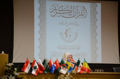 ابتدأ الحفل بترتيل آيات بينات من الكتاب المبين تلتها القارئة (عفراء حنون)، تلت ذلك كلمة ترحيبية قدمتها حرم جناب المتولي الشرعي للعتبة العباسية المقدسة جاء فيها: قال تعالى في محكم كتابه: (الذين امنوا وهاجروا وجاهدوا في سبيل الله بأموالهم وانفسهم اعظم درجة عند الله واولئك هم الفائزون).