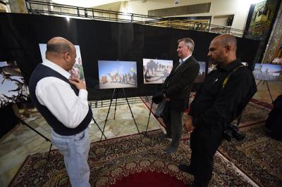 بعدها توجّه السفير لمعرضٍ خاصٍّ باللوحات التصويرية للانتفاضة الشعبانية المباركة وما تعرّضت له عتبات كربلاء المقدسة على يد جلاوزة اللانظام السابق، وما وصلت اليه في الوقت الحاضر.