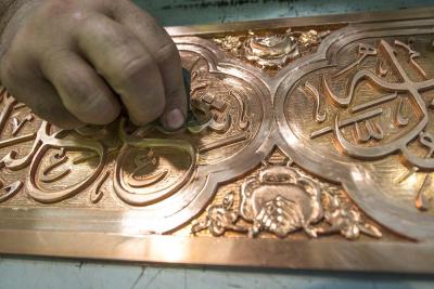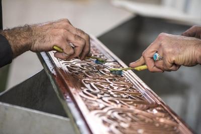 تمرّ هذه القطع (الكتائب الشعرية) بعدّة عمليات، فبعد أخذ القياسات اللازمة لها والخطوط الخاصة بها، والتي ستُنقش وتُخَطّ بمكائن (CNC) يتمّ تصحيح الخطوط ووضع حركاتها يدويّاً، كون أنّ هذه الماكنة لاتعطي نتائج وفقاً لما هو مطلوب، بعدها تأتي أعمال استئصال الزوائد المعدنية (التشذيب) والتنعيم والتلميع ولُحام أماكن تثبيتها على الهيكل الخشبيّ، وبعد التأكّد من مطابقتها للقياسات عن طريق ربطها على هيكل الخشب تُختَتَم بأعمال الطلاء بماء الذهب والمينا والتي تتمّ بورشٍ خاصة داخل مصنع شبابيك الأضرحةفي العتبة العباسية المقدّسة وبمعايير ونسب خلط قياسيةخاصةودقيقة.