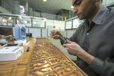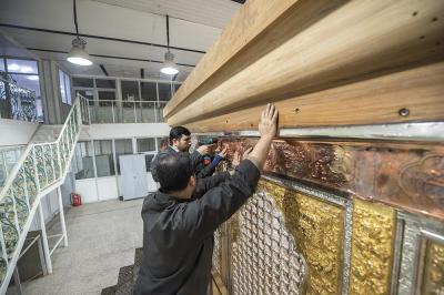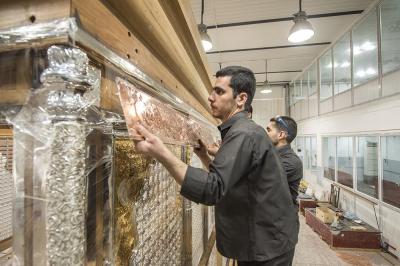 علماً أنّ الأعمال بهذه الكتائب مستمرّ ومتواصل وقد تمّ إنجاز نسبٍ كبيرة منها ورُكّب بعضٌ منهاعلى الهيكل الخشبي، وإنّ هذه الأعمال تجري بالتوازي مع أعمالٍ تصنيعيةٍأخرى خاصة بقطع الشباك الجديد لأبي الفضل العباس(عليه السلام).