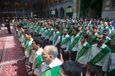 ففي مبادرة رائعة تعبر عن حب الوطن الممزوج بالإيمان بقادته الحقيقيين، قامت كوكبة من الضباط الجدد المتخرجين من الكليات العسكرية العراقية بالتشرف بزيارة مرقدي الإمام الحسين وأخية وحامل لوائة أبي الفضل العباس (عليهما السلام ) وإداء العهد والتحية بصورة جماعية أمامه، معاهدينه على الخدمة المخلصة للعراق وأبناءه في جميع أرجائه دون تمييز بين أحد من ابنائه , فضلا عن مشاركتهم لخدمة أبي الفضل العباس (عليه السلام) بالممارسة العبادية .