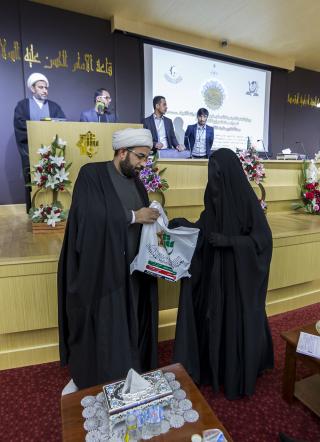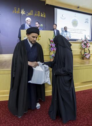 اختُتِمَ الاحتفال أخيراً بتوزيع الجوائز على الهيأة التدريسيّة والكوادر العاملة في معهد تراث الأنبياء(عليهم السلام) وكذلك على طلبته المتفوّقين في المرحلتين التمهيدية والمقدّمات. بعدها تمّ توزيع الجوائز على الإخوة الفائزين في المسابقات التي أقامها المعهد ومنها: