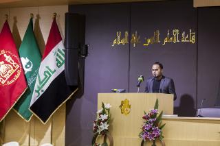 جاءت بعدها كلمةُ معهد تراث الأنبياء(عليهم السلام) التي ألقاها مديرُ المعهد فضيلة الشيخ حسين الترابي وبيّن فيها: "إنّ من أولويّات المعهد بالإضافة الى الدراسات الحوزويّة الإلكترونيّة نشرُ وطباعة البحوث والمؤلّفات العلميّة للطلبة والأساتذة في الحوزة العلميّة في النجف الأشرف، وهذه خدمةٌ عظيمة نقدّمها لطالبي المعرفة في كلّ مكان، وفي نفس السياق قام المعهدُ بإجراء عدّة مسابقاتٍ كان الهدفُ منها المساهمة في نشر علوم وتراث أهل البيت(عليهم السلام) والإيثار المعرفيّ في مجتمعاتنا، انطلاقاً من أهداف المعهد في التواصل مع المجتمع ومن رؤيته في ترسيخ العقيدة والقيم الإسلاميّة وتنمية الوعي الإسلامي والعناية بالقرآن الكريم وغيرها، وتأتي هذه المسابقات في خضمّ النشاط الدؤوب للمعهد على مدار الوقت".