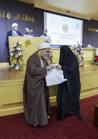 برعاية العتبة العبّاسية المقدّسة أقام معهدُ تراث الأنبياء(عليهم السلام) للدراسات الحوزويّة الإلكترونية التابع لقسم الشؤون الفكريّة والثقافيّة فيها بعد ظهر اليوم الجمعة (9ربيع الأوّل 1438هـ) الموافق لـ(9كانون الأوّل 2016م) احتفاليّةً خاصّةً بتكريم مجموعة كبيرة من الفائزين في المسابقات التي أطلقها المعهدُ مؤخّراً بالإضافة الى تكريم طلبته المتفوّقين في مختلف المراحل، وذلك على قاعة الإمام الحسن(عليه السلام) للمؤتمرات والندوات في العتبة المقدّسة.