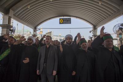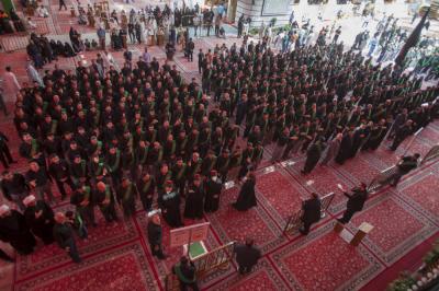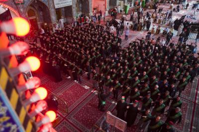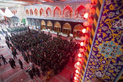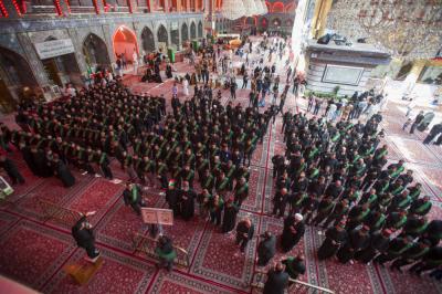 وما إن وطئت أقدامهم الحِياض الطاهرة لمرقده المُقدّس حتى كان بانتظارهم خَدَمته، ليُعقد هناك في الصحن الشريف مجلس عزاء لطم ومرثيات عبّرت عن مدى الولاء المُطلق لسيرة ونهج تاسع الأئمة محمد الجواد (عليه السلام) والتمسك بهما، مُتَّخذين من هذهِ المناسبة نبراساً يستنيرون به طريقهم في خِدمة زائري المرقدين الطاهرين ، ومجسدين في الوقت ذاته عِظم مأساة هذه المصيبة .