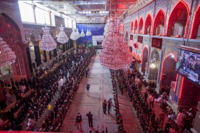 فبعد أن اصطفوا على شكل كراديس في صحن أبي الفضل العباس (عليه السلام) وقدموا العزاء له بقصائدٍ عزائية ، توجهت جموعهم يتقدمهم الأمين العام للعتبة العبّاسيّة المُقدّسة المهندس محمد الاشيقر (دام تأييده) ونائبه وعدد من مسؤولي العتبة المُقدّسة صوب أبي الشُهداء الإمام الحسين (سلام الله عليه) .