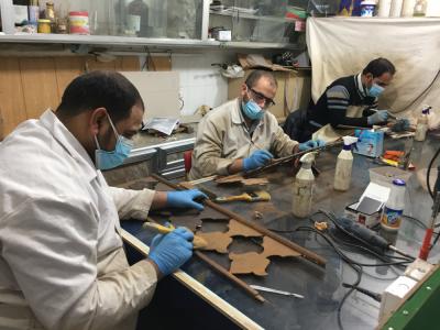 أمّا الأستاذ أمير أحمد هاشم مسؤول وحدة الترميم في المتحف فقد أطلعنا على بعض أعمال الصيانة والمعالجة والموادّ التي تمّ استخدامها مضيفاً: "جمعنا من المخزن قطعاً من الشبّاك النادر كانت على شكل مكعّبات واسطوانات، وبدأنا بأعمال المعالجة للوصول الى الوجه الحقيقيّ للشبّاك مع إضافة موادّ أخرى من أجل حمايته من التأكسد والمحافظة على شكله الطبيعيّ".