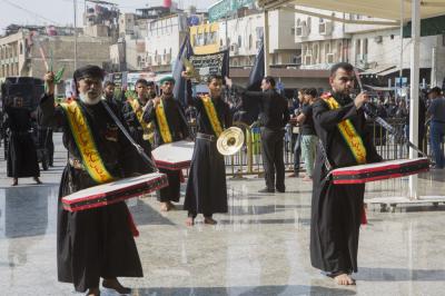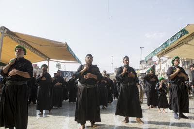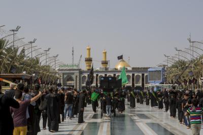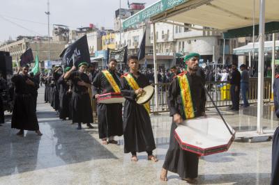Since the early hours of the morning of the first day of the holy month of Muharram, the two holy shrines of Imam al-Hussayn and al-Abbas (peace be upon both of them) started receiving Ashura condolences processions (Zinjeel and lamentation processions) coming from every direction from the holy city of Karbala, carrying the mourning banners, and beating their chest and lamenting to express their sorrow and grief for the tragedy of the grandson of Holy Prophet; Imam al-Hussayn son of Ali (Allah's prayers be upon them all).