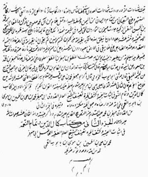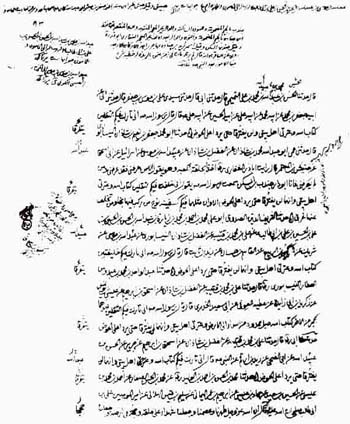 7 ـ نسخة مذهبة ثمينة جيدة متقنة بخط النستعليق معنونة بالحمرة لخزانة كتب الالمعي المفضال الحاج باقر ترقي لا زال مؤيدا مسددا . جزءان في مجلد في 532 صفحة ـ 18 سطرا . 24 * 15 سم ـ كاتبها محمد كاظم بن محمد معصوم انجو الحسني الحسيني ، الجزء الاول منها مؤرخة هكذا « يوم الاربعاء شهر رجب المرجب سنة أربع وخمسين وألف » 1054 . والجزء الثاني يوم السبت ثامن عشر شهر رمضان المبارك 1054 .