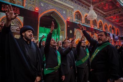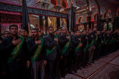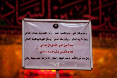 بعباراتٍ حزينة وبعيونٍ دامعة خرج بعد ظهر اليوم الأربعاء (25محرم 1436هـ) الموافق لـ(19تشرين الثاني 2014م) خَدَمَةُ العتبة العباسية المقدسة في موكبٍ عزائي إحياءً لذكرى الفاجعة الأليمة باستشهاد رابع أئمة أهل البيت(عليهم السلام) زين العابدين وسيد الساجدين الإمام علي بن الحسين(عليهما السلام)، حيث كانت بداية انطلاقة الموكب من صحن المولى أبي الفضل العباس(عليه السلام) بعد أن اجتمعوا عنده ليتوجّهوا بعدها نحو ضريح الإمام أبي عبدالله الحسين(عليه السلام) للتعزية باستشهاد ولده، وحناجرهم تصدح مستذكرةً هذه الذكرى الحزينة التي ألمّت بمحبّي أهل البيت(عليهم السلام) وأتباعهم في مثل هذه الأيام، ليُستَقْبَلوا بعبارات الحزن والأسى من قِبَل خَدَمَةِ الإمام الحسين(سلام الله عليه) وليقام بعدها مجلس عزاء (لطم) في الصحن الحسيني الطاهر، كما أُلقيت بعض المراثي التي تناولت جانباً من سيرة وحياة الإمام(عليه السلام) والتي عاشها حزناً وألماً على مصيبة والده الإمام الحسين(عليه السلام) والمعاناة والظلم الذي لَحِقَ به من قبل حكام بني العباس، كما شهدت العتبتان المقدستان دخول المواكب العزائية الحسينية منذ ساعات الصباح الأولى لإحياء هذه الذكرى الأليمة.