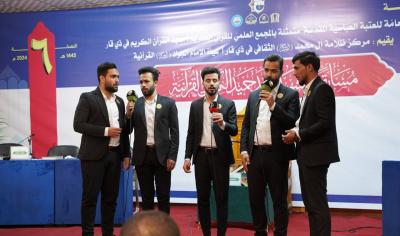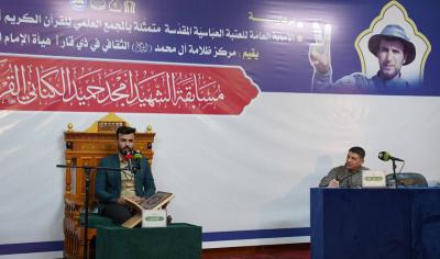 وتابع "أما تحكيم التجويدِ فأُوكل للدكتورِ علي الواجدي، والسيّد رحيم الساعدي في الوقفِ والابتداء، والسيّد محمد نزار في الصوت، والسيد فيصل مطر في النغمِ بالطريقةِ المصريّة، وقدّم فعالياتها كل من محمد صباح الناشي، ومهدي محمد العسكري".