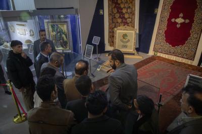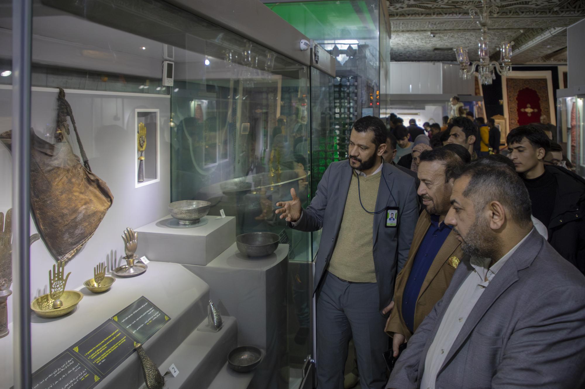 وقال معاون رئيس قسم المتحف الدكتور شوقي الموسوي "استقبلنا اليوم وفدًا من المتحف الإسلامي التابع لدائرة الاحتفالات الدينية في ديوان الوقف السني ضمن إطار التعاون المتحفي المستمر، وأطلعنا الوفد الزائر على جميع جوانب عمل المتحف، بدءًا من التوثيق وأرشفة المواد، مرورًا بكيفية الخزن والصيانة المتحفيّة، وصولًا إلى وحدة السجّاد والقاعة المتحفية".