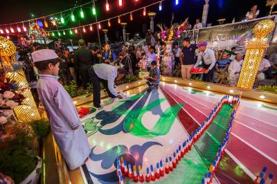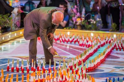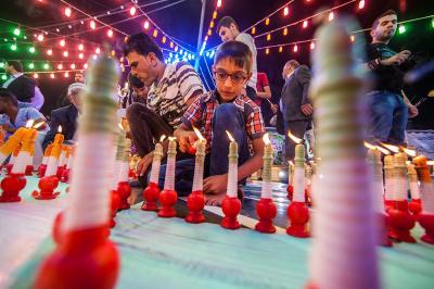 في مساءٍ شعبانيّ مبارك وقرب مقام الإمام المهديّ(عجّل الله تعالى فرجه الشريف) الذي يقع في الجهة الشمالية من المدينة القديمة أُقيم مساء هذا اليوم الاثنين (13شعبان 1436هـ) الموافق لـ(1حزيران 2015م) وبرعاية العتبتين المقدّستين الحسينية والعباسية مهرجان الشموع الخامس عشر، حيث أوقدت (1181) شمعة وهي بعدد عمر الإمام المهديّ(عجّل الله تعالى فرجه الشريف) وقد كُتِبَت بها عبارة (المهديّ وعد الله).