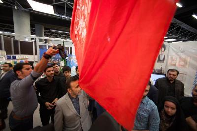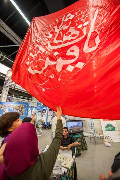 وهؤلاء ابطال حشدنا الشعبي المقدس وقواتنا الباسلة يسطرون أروع الانتصارات على وحوش البشر داعش الارجاس ببركة تقدم راية أبي الفضل العباس عليه السلام لجحافلهم الباسلة ، ولما كان كل هذا الشأن العظيم لهذه الراية العظيمة راسخ ومتجذر في أعماق النفوس المؤمنة فمن الطبيعي أن تتهافت القلوب مسرعة نحوها بمجرد أن تلمحها العيون وهي تعتلي جناح العتبة المقدسة المشارك بفعاليات معرض القران الكريم الدولي في طهران .