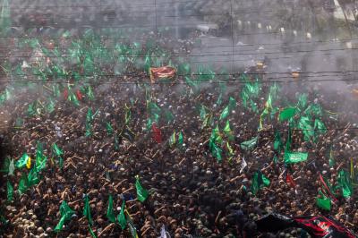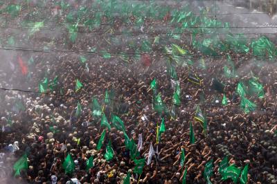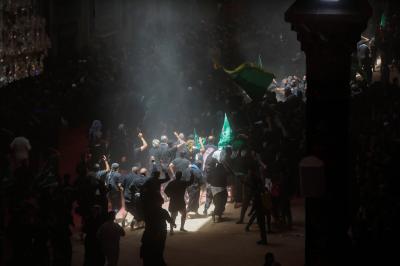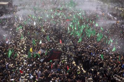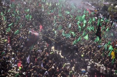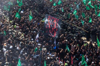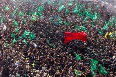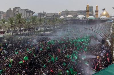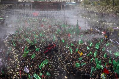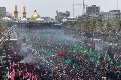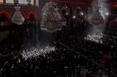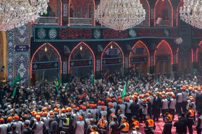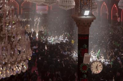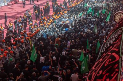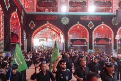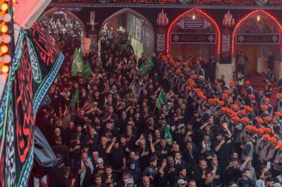 واعتلت أصوات المعزين بالهتافات التي تعبر عن نصرة قضية سيد الشهداء الإمام الحسين (عليه السلام)، وتجديد العهد بالسير على مبادئ النهضة الحسينية الخالدة، وإيصال رسالتها السامية إلى العالم أجمع.
