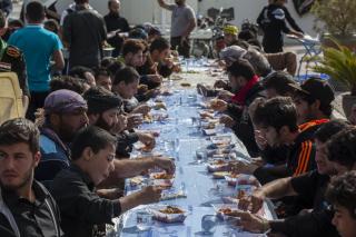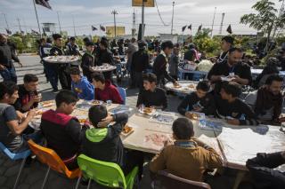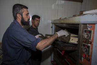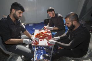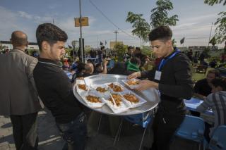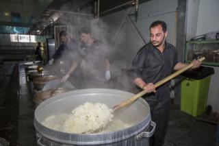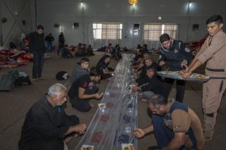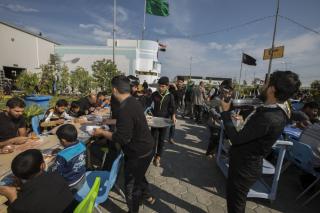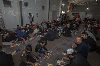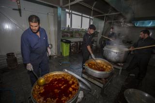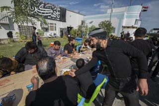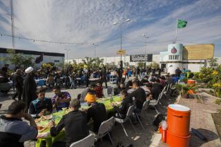 وأضاف: "خلال فترة الزيارة الفعليّة وعند بدء توافد الزائرين نقوم بتجهيز (10,000) وجبة طعام بواقع ثلاث وجبات يوميّة (فطور وغداء وعشاء)، وخلال هذه الوجبات يتمّ توزيع فقرات متنوّعة كالفاكهة بأنواعها والحلويات، بالإضافة إلى توزيع الشاي والماء والقهوة العربيّة والمعجّنات باستمرار خلال النهار".
