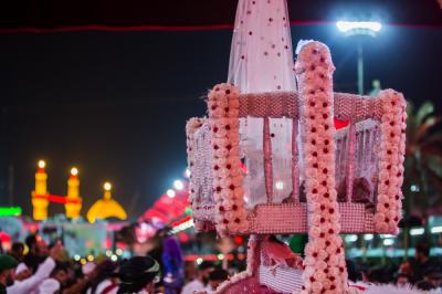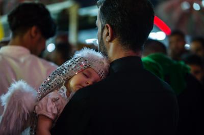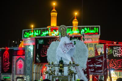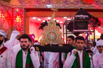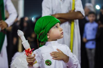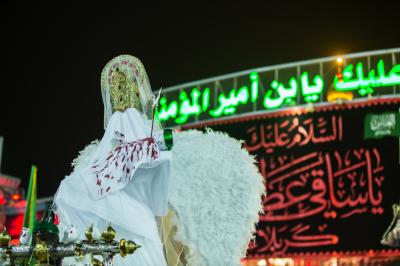 مواكب العزاء العاشورائية وكعادتها منذ مئات السنين استحضرت هذه المناسبة الأليمة عند مرقدي الإمام الحسين وأخيه أبي الفضل العباس (عليهما السلام) والتي أفردت لها الليلة التاسعة من محرم الحرام، تهتف فيها الردَّات التي تدل على عمق مواساتهم للإمام الحسين ورضيعه (عليهما السلام)، وبمشاركة أطفال صغار مُرْتَدينَ ملابس خضراء وبيضاء وعصبات شدّت على جباههم، كتب عليها شعارات تخصُّ الطفل الرضيع، إضافة الى حملهم مهداً يَرمز الى مهد الرضيع .