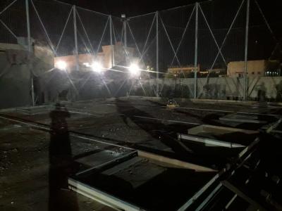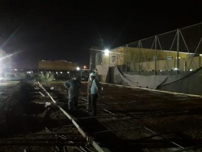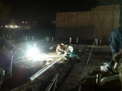وأضاف: "العمل جارٍ في أوقات متأخّرة من الليل لتثبيت القواعد الحديديّة للأساسات وهياكل الجدران، إذ تعدّ هذه الأعمال قبل عمليّة صبّ الأرضيّة التي سيُشرع بها في صباح يوم غدٍ بإذن الله".