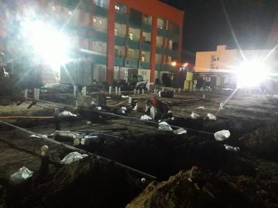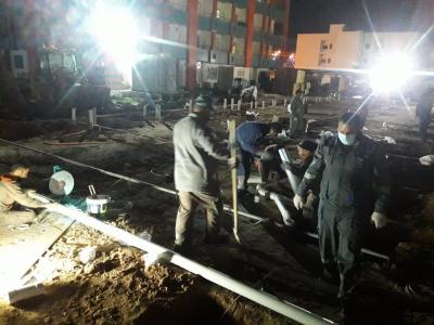 المهندس المُقيم عمار صلاح مهدي بيّن لشبكة الكفيل العالميّة: "في وقتٍ قياسيّ استطاعت الملاكاتُ الهندسيّة والفنّية إنهاء أعمال البُنى التحتيّة لمشروع بناء ردهة العلاج للمصابين بوباء كورونا المستجدّ، حيث شملت الأعمال إنهاء إمدادات السباكة والخدمات تحت الأرضيّة".