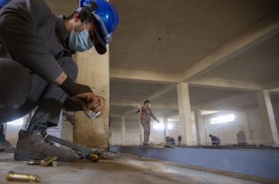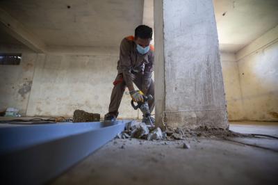 مبيّناً: "مساحة المشروع الكليّة بلغت (1500م2) ستُقام عليها الردهة التي تحتوي على 35 غرفة (سويت) مفردة، أمّا مدّة الإنجاز فستكون خلال (15) يوماً".