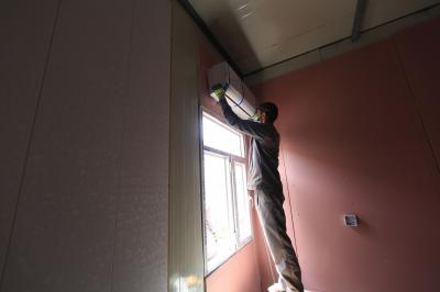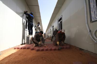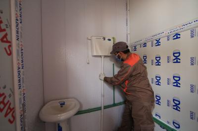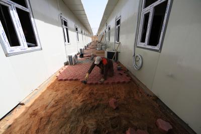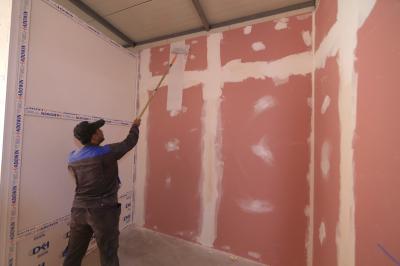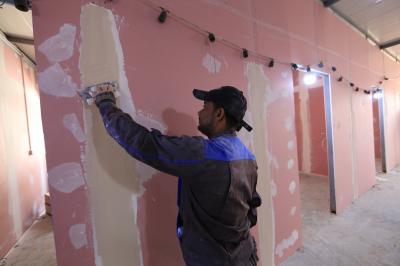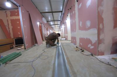 - الانتهاء من تثبيت قطع (السندويج بنل) على جدران المجمّعات الصحيّة.