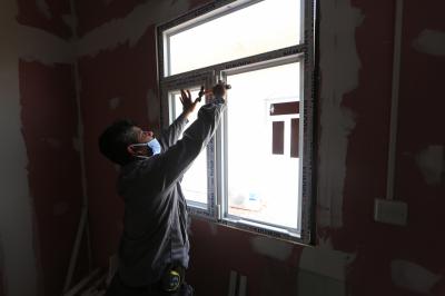 - أعمال تثبيت الأبواب والشبابيك وصلت الى نسبة إنجازٍ تُقدّر بـ(80%).