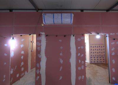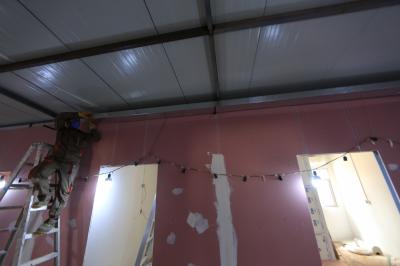 - الانتهاء من تثبيت قطع (الجبس بورد) على المقاطع المذكورة.