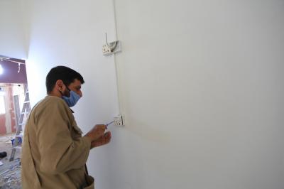 - أعمال التسليكات الكهربائيّة وصلت الى نسبة إنجاز 70%، والعمل جارٍ حاليّاً على تثبيت المقابس والبوردات والقواطع الكهربائيّة.