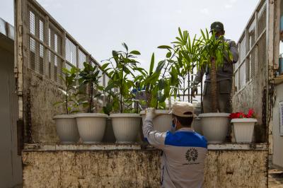 کارکنان بخش زیباسازی و درختکاری وابسته به بخش امور خدماتی، اقدام به زیباسازی فضای مرکز درمانی مبتلایان به ویروس جدید کرونا با انواع گیاهان زینتی کردند.
