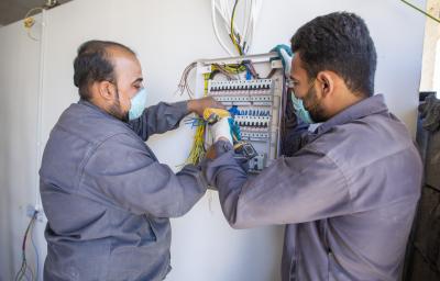 - أعمال الكهرباء الرئيسيّة من تسليك قابلوات وبوردات وصلت الى نسبة إنجاز (70%).