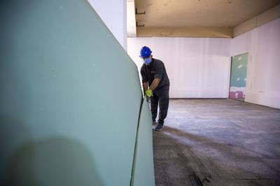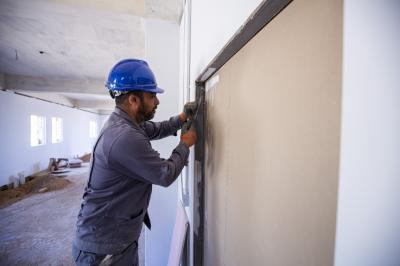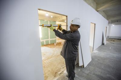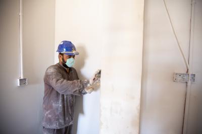 - تثبيت قواطع الجبس بورد على الهياكل الحديديّة وصلت نسبتها الى (60%)".