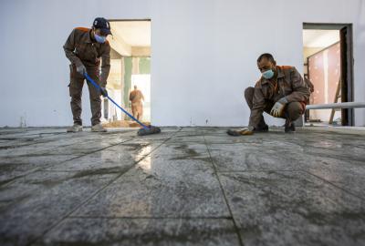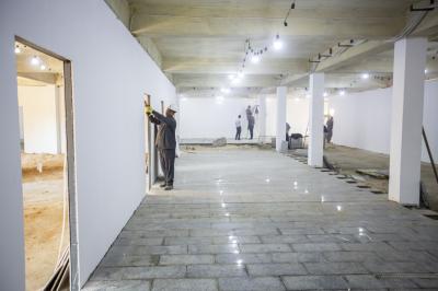 - أعمال إكساء الأرضيّة بالكرانيت وصلت الى نسبة إنجاز (50%).
