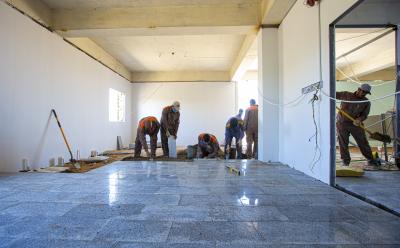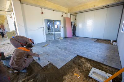 - أعمال إكساء أرضيّة الردهة بمادّة الكرانيت وقد وصلت النسبة الى (75%)، مع العلم أنّ الإكساء سبقته أعمال تهيئة أرضيّة الردهة وزيادة علوّها، لكي تتناسب مع طبيعة المُنشأ.