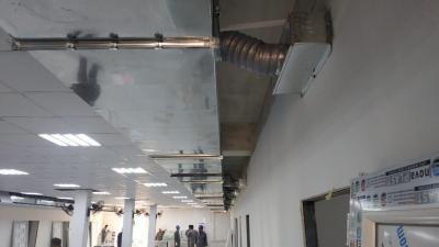 - أعمال منظومة التبريد الصحّية بخطَّيْها الدافع والساحب وتفرّعاتها لغرف الردهة وقد وصلت الى 80%.
