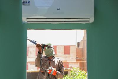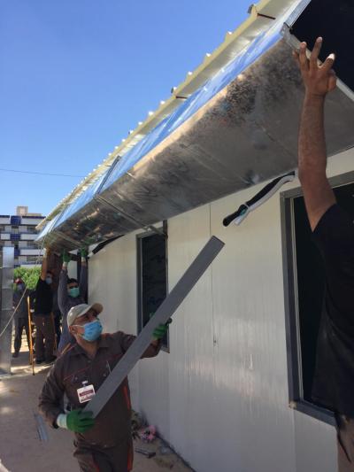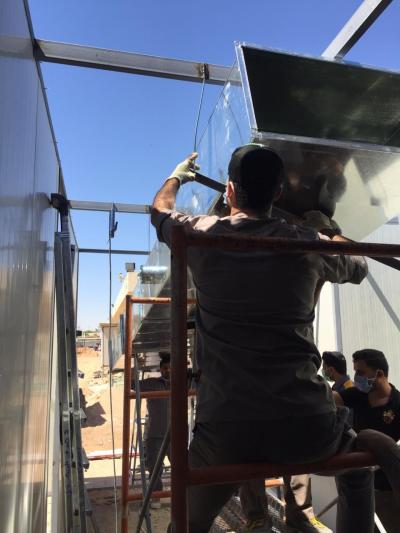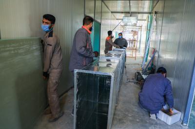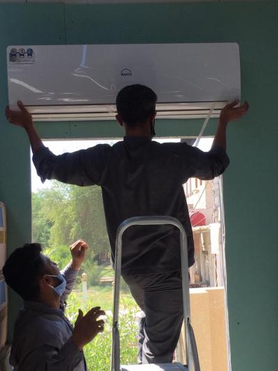 أوّلاً: التبريد بواسطة أجهزة التبريد الخاصّة بكلّ غرفة، حيث وصلت أعمال تركيب القطع الداخليّة والخارجيّة بأجهزة تبريد سعة طنّين وربع الطن، وبلغت نسبة الإنجاز الى 70%، وهذه تُستخدم في حال الانتهاء من هذا الوباء إن شاء الله بعد أن يتمّ استخدامها لأغراض صحّية وعلاجيّة أُخَر.