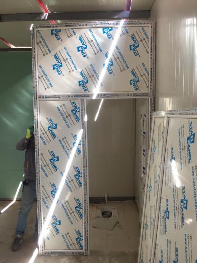 - الانتهاء من أعمال تقطيع المجموعات الصحّية الخاصّة بالردهات والغرف بمادة (PVC) بنسبة 100%.