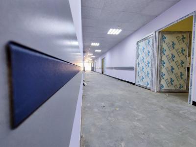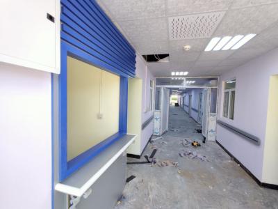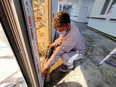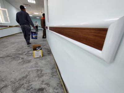 وأضاف: "الأعمال جارية حاليّاً على إتمام تغليف واجهة المبنى بموادّ عازلة من الفلّين الحجريّ، إضافةً الى إنهاءات أعمال إيصال مصادر المياه الرئيسة للمبنى وربط خطوط نقل الصرف الصحّي الى منافذها، فضلاً عن بعض الأعمال الخاصّة بمنظومة دفع الهواء النقيّ لجميع غرف العزل، والعمل جارٍ على إيصال الكهرباء الوطنيّة الى البناية لكون أنّ المسافة طويلة وتحتاج الى تدخّل دائرة كهرباء كربلاء، ترافق ذلك أعمال تثبيت المقاطع الخشبيّة على ممرّات المبنى التي تعمل على ترصينها من جهة ومن جهةٍ أخرى كمنظرٍ جماليّ، وتهيئة الأرضيّة لغرض إكسائها بمادّة الإيبوكسي".