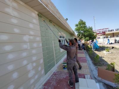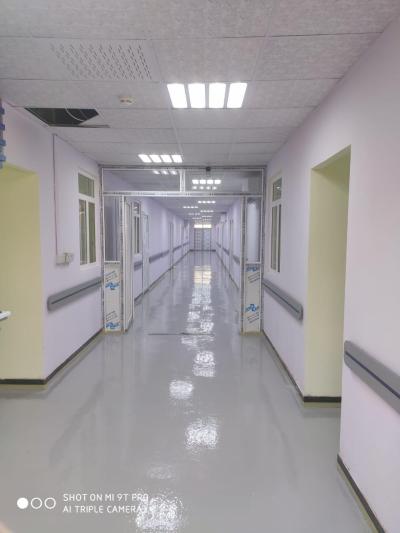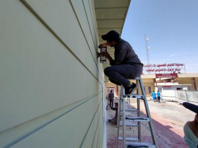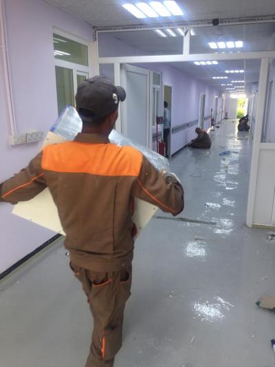 وأضاف: "أنّ ما تبقّى هو أعمالُ صبغ التغليف الخارجيّ الذي غُلّف بمادّة الفلين الحجري العازل، والتي من المؤمّل أن تُختتم هذه الليلة، مع إجراء بعض الأعمال الأُخَر كالتنظيف والتعقيم وطلاء أرضيّة غرف الأجنحة المفردة والمساحات المطلّة عليها وساحتها الوسطى بمادّةٍ ضدّ البكتيريا، وقد تمّ إجراء جميع الفحوصات على المنظومات الكهربائيّة والمياه والتبريد، ومنظومتَيْ سحب ودفع الهواء التي أثبتت نجاحها والحمد لله".