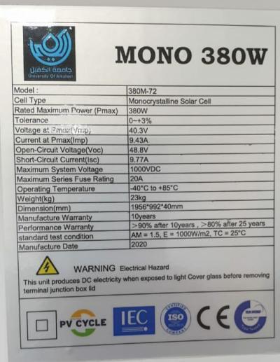 موضّحاً: "أنّ المنظومة وألواحها تمتازُ بجودةٍ وكفاءةٍ عالية وتمتاز بأنّ زوايا الخلايا الشمسيّة يُمكن أن تغيّر ميلانها باتّجاه الشمس طيلة أشهر السنة، لغرض الحصول على أقصى طاقةٍ ممكنة من الشمس".