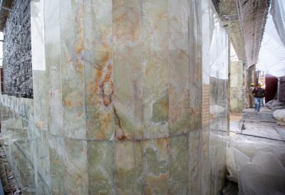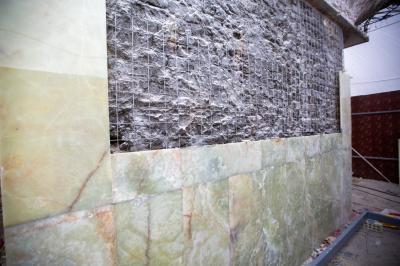 As indicated by the head of the aforementioned department, Eng. Dea' Al-Sa'egh, to the Al-Kafeel network: “The cladding work is being done in the area that extends from the outer wall of the holy sanctuary, to the section separating it from the holy sanctuary. Preparation work is nearing completion and the cladding starts on the completed sections, which included the wall of the room on which two of the Taremah's columns are supported."