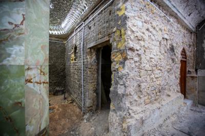 He continued: "As for the room, all the materials covering the walls from the inside and outside have been removed and treated, in addition to fixing the metal material on it, then to be covered with alabaster pieces in the inside and the streaky Kashi Karbalai on the outside, with the addition of the Ziyarat text of Aba Al-Fadl. Al-Abbas (peace be upon him) in the middle of the wall to replace the old one, which was a printed picture of this Ziyarat."