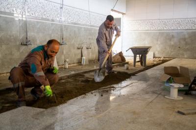 The supervisor of this project, Engineer Ammar Salah, told Al-Kafeel Network: “The work is currently distributed on all project joints in parallel lines, and the completion rate of the floor cladding has reached more than (80%). Also the bathrooms are almost completed in addition to the walls' paint, wiring works for electrical and water systems, cameras and other supporting systems. In addition to that, the work started on the facade of the building, which completion rate has reached nearly (80%).