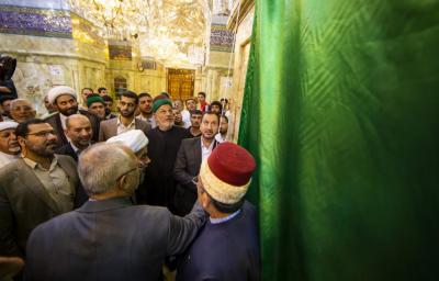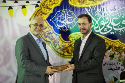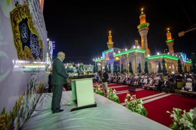 حيث أُجري في صحن الإمامين الكاظمَيْن(عليهما السلام) حفلٌ مهيب، حضره عددٌ من أعضاء مجلس الإدارة والأمينُ العامّ للعتبة العبّاسية المقدّسة السيد محمد الأشيقر(دام تأييده)، وممثّلُ المرجعيّة الدينيّة العُليا في مدينة الكاظميّة المقدّسة سماحة الشيخ حسين آل ياسين(دامت بركاته)، وممثّلو العتبات المقدّسة والمزارات الشريفة وعددٌ من الشخصيّات الدينيّة والاجتماعيّة والحكوميّة، المشارِكة في حفل عيد الغدير في الصحن الكاظميّ الشريف، ومجموعة من خدّام العتبة المطهّرة وزائري الإمامَيْن الجوادَيْن(عليهما السلام).