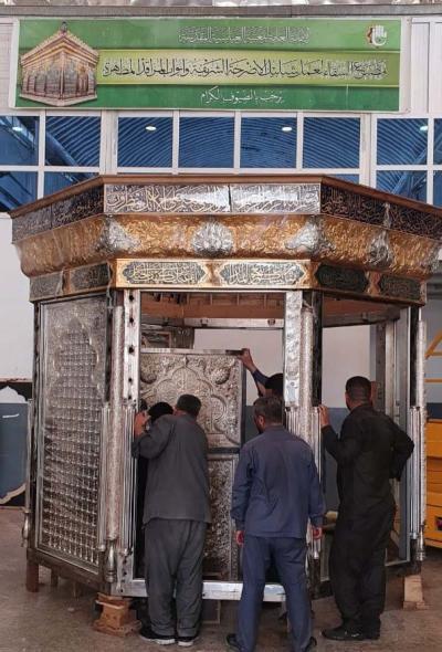 شرعتْ ملاكاتُ قسم صناعة شبابيك الأضرحة الشريفة وأبوابها المُطهّرة في العتبة العبّاسية المقدّسة، بتركيب وتثبيت أجزاء شبّاك مقام الكفّ الأيسر لأبي الفضل العبّاس(عليه السلام)، وذلك في مصنع العتبة المقدّسة لصناعة شبابيك الأضرحة الشريفة وأبوابها.