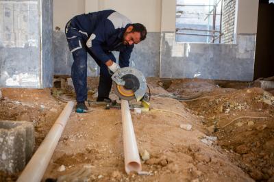 وأوضَحَ بريهي أنّ: "الأعمال التي تلت تقطيع المبنى حسب المخطّطات الموضوعة والمصادق عليها من قِبل إدارة الجامعة، هي إكساء الجدران مع تهيئة تسليك منظومات (التبريد والأنترنت والمراقبة والإطفاء والإنذار المبكّر) وغيرها، كذلك هناك أعمالٌ تُجرى حاليّاً بموازاة هذه الأعمال وهي إكساء الواجهة الأماميّة وتغليف الجدران بمادّة البورسلين، وقد شارَفَ أغلبُها على الانتهاء".