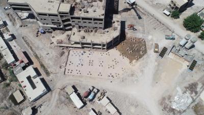 وأضاف: "أمّا البناية المُلحقة أو الخدمات فقد تمّ الانتهاء من حفر المساحة المخصّصة لبنائها، وتسليح وصبّ الركائز مع فحصها وبيان مدى قوّة تحمّلها، إضافةً إلى دفن ما تمّ حفره بمادّة (الجلمود) مع الحدل الجيّد، ودفن الحصى الخابط الناجح بالحدل والفحوصات، علاوةً على صبّ طبقة (البلايندنك) بسُمْك (10سم) تحت الأساس الحصيري، والعزل المائيّ لطبقة (البلايندنك) بمساحة (1800) مترٍ مربّع، مع صبّ طبقة (السكريد) بسُمْك (5سم) تحت الأساس الحصيريّ، لتتمّ بعد ذلك المباشرة بتهيئة الأعمدة الخرسانيّة حسب ما خُطّط لها".