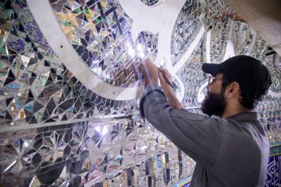 اللّمسات الأخيرة لصيانة وتزجيج قبّة مرقد أبي الفضل العبّاس (عليه السلام)
