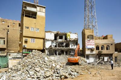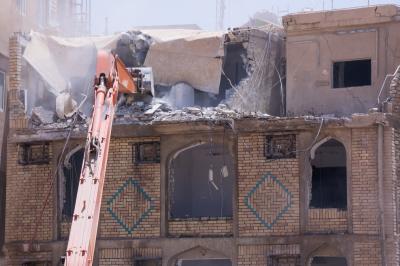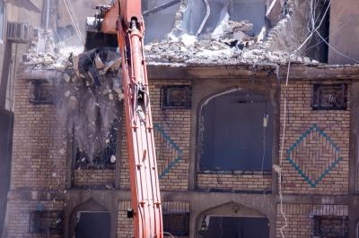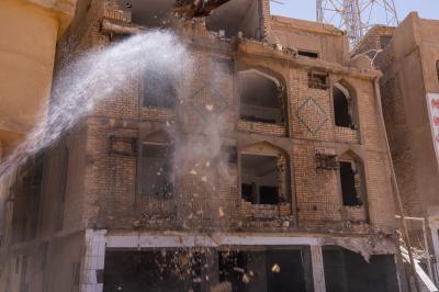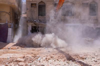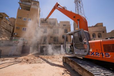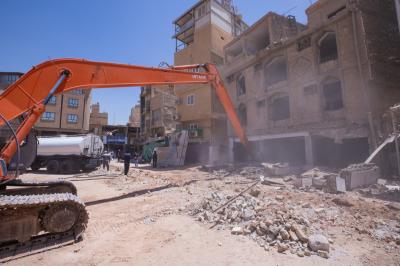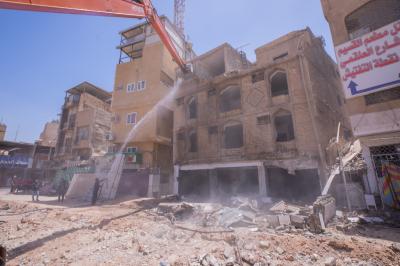 وأضاف أنّ "هدم البنايات يُجرى بعد الانتهاء من تفريغها بالكامل من محتوياتها وجعلها بنايةً خالية تماماً، ليُشرَعَ بعد ذلك بأعمال الهدم التي جرت باتّباع طريقةٍ فنّية، روعي فيها مبدأُ السلامة العامّة والدقّة في التنفيذ ومراعاة الظروف الجوّية الحارّة".