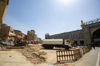 وقال المُشرِفُ على هذه الأعمال السيّد حسين الشهرستاني، إنّ "هدم البنايات هو جزءٌ من مرحلةٍ سابقة انتُهِي منها في وقتٍ سابق، لتأتي مساحتها معزّزةً لسابقتها وبالتحديد المجاورة للسور الخارجيّ للعتبة العبّاسية المقدّسة، والمقابلة لها في الجهة الشماليّة الشرقيّة من العتبة المقدّسة".